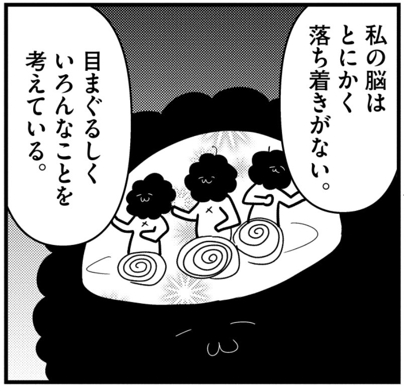 このような経緯で、私はカレー沢さんと出会ったわけです。ここに漫画の一部を載せますが、「頭の中が騒がしい」「脳に落ち着きがない」といった表現です。